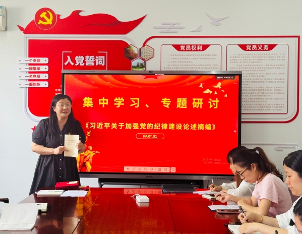 袁少英带领全体党员认真学习了《习近平关于全面加强党的纪律建设论述摘编》(下称《论述摘编》),《论述摘编》分10个专题,共计329段论述,摘自习近平同志2012年11月至2024年4月期间的报告、讲话、说明、文章、指示等130多篇重要文献。其中部分论述是第一次公开发表。她要求大家要全面通读细读精读,深刻理解《论述摘编》核心要义和精神实质。